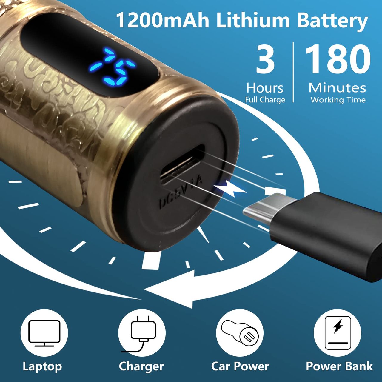 (4) Batterie au lithium rechargeable de 1200 mAh avec câble USB. Fonctionnement super silencieux avec des vibrations à basse fréquence.